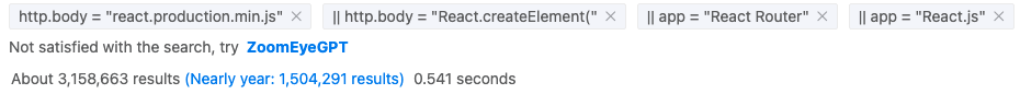 ZoomEye shows 3.1M+ exposed React targets.